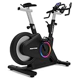 - DISEÑO COMPACTO: esta bicicleta estática está diseñada para el entrenamiento en casa, como spinning, e incluye ruedas de transporte para moverla fácilmente y un sistema de estabilidad con conteras ajustables. Es una máquina de sistema pre-montado Plug & Train, cuya dimensión es de 83 x 51 x 130 cm, lo que la hace perfecta para cualquier espacio, combinando funcionalidad y diseño moderno.