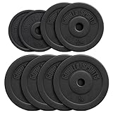 - MANEJO CÓMODO: Cada plato de pesas puede utilizarse para el entrenamiento de peso libre: tres asas acanaladas para los dedos garantizan un manejo comodo - el juego incluye 2 platos de 2.5 kg, 2 platos de 5 kg