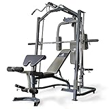 - ENTRENAMIENTO DE CUERPO COMPLETO: Esta máquina está diseñada para mantener las piernas perpendiculares al suelo y las rodillas alineadas con los talones, lo que hace que el ejercicio sea muy estable y proteja las articulaciones. Ideal para hacer sentadillas, abdominales y flexiones